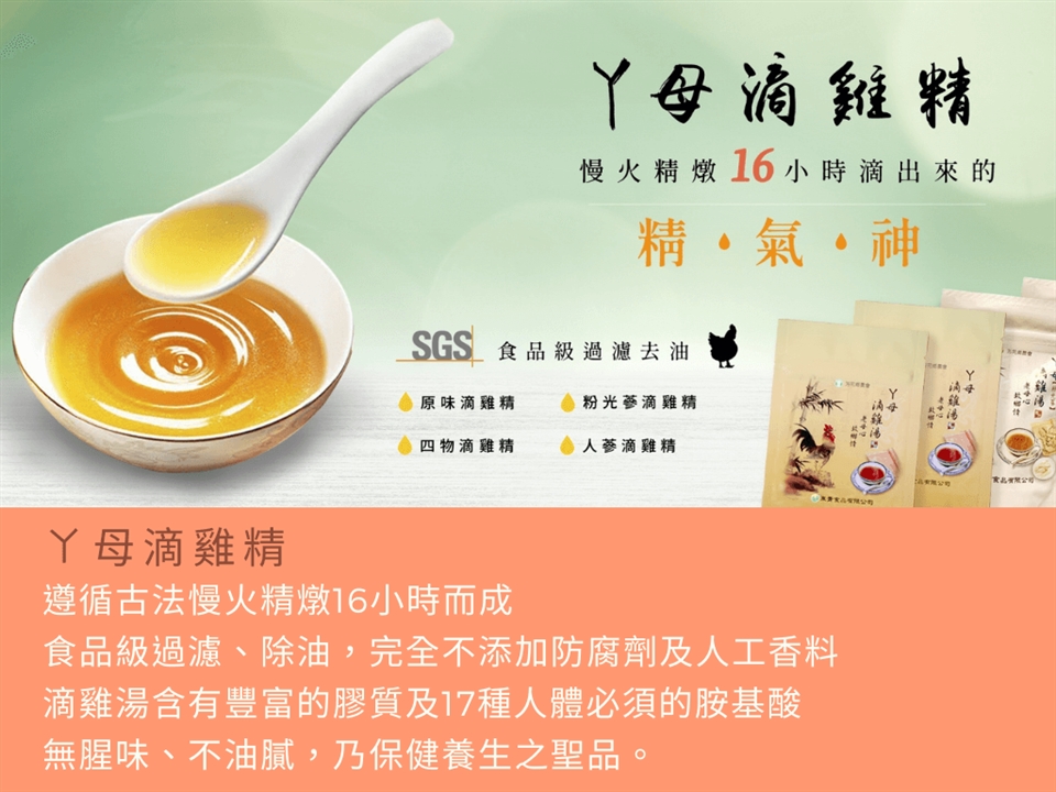 遵循古法慢火精燉16小時而成,食品級過濾、除油,完全不添加防腐劑及人工香料。 滴雞湯含有豐富的膠質及17種人體必須的胺基酸,無腥味、不油膩,乃保健養生之聖品。