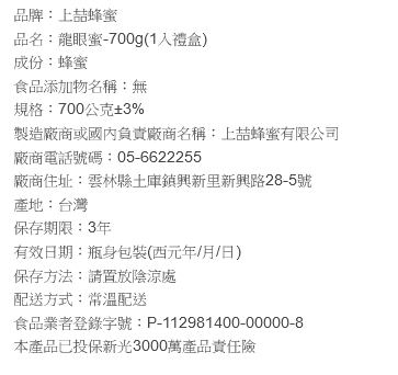 ★製造廠商或國內負責廠商名稱: 上喆蜂蜜有限公司