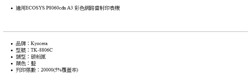 京瓷KYOCERA原廠碳粉匣/TK-8806C/藍色