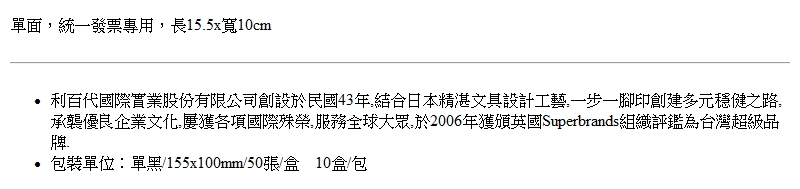 利百代LIBERTY發票複寫紙50/單黑/155x100mm/50張