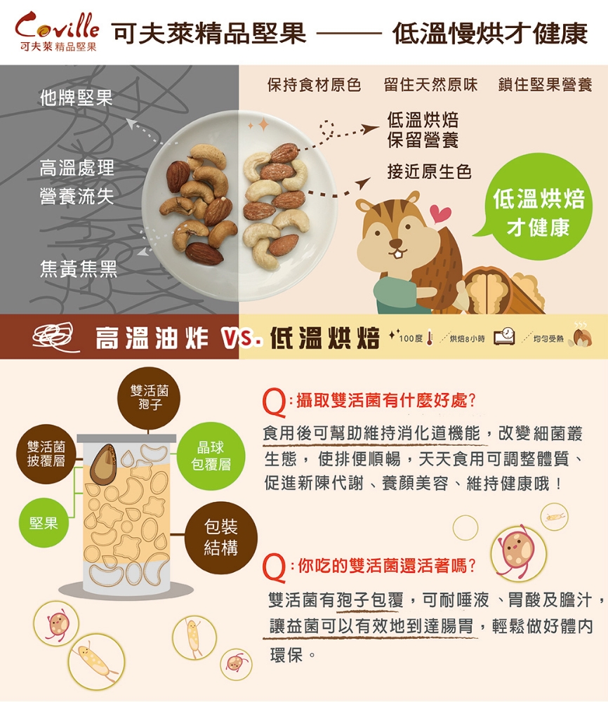 雙活菌三威真果核桃、腰果、胡桃、雙活菌(燕麥粉、納豆菌發酵物、芽孢乳酸菌發酵物、麥芽糊精)堅果餅乾杏仁、核桃、腰果、胡桃、開心果、燕麥、糖粉、有鹽奶油、低筋麵粉、糙米、蕎麥、小米、藜麥、椰子粉、蛋楓糖養生綜合果仁腰果、核桃、南瓜子、瓜子仁、砂糖、麥芽糊精、麥芽糖漿、楓糖、黑芝麻、白芝麻、亞麻子、結蘭膠