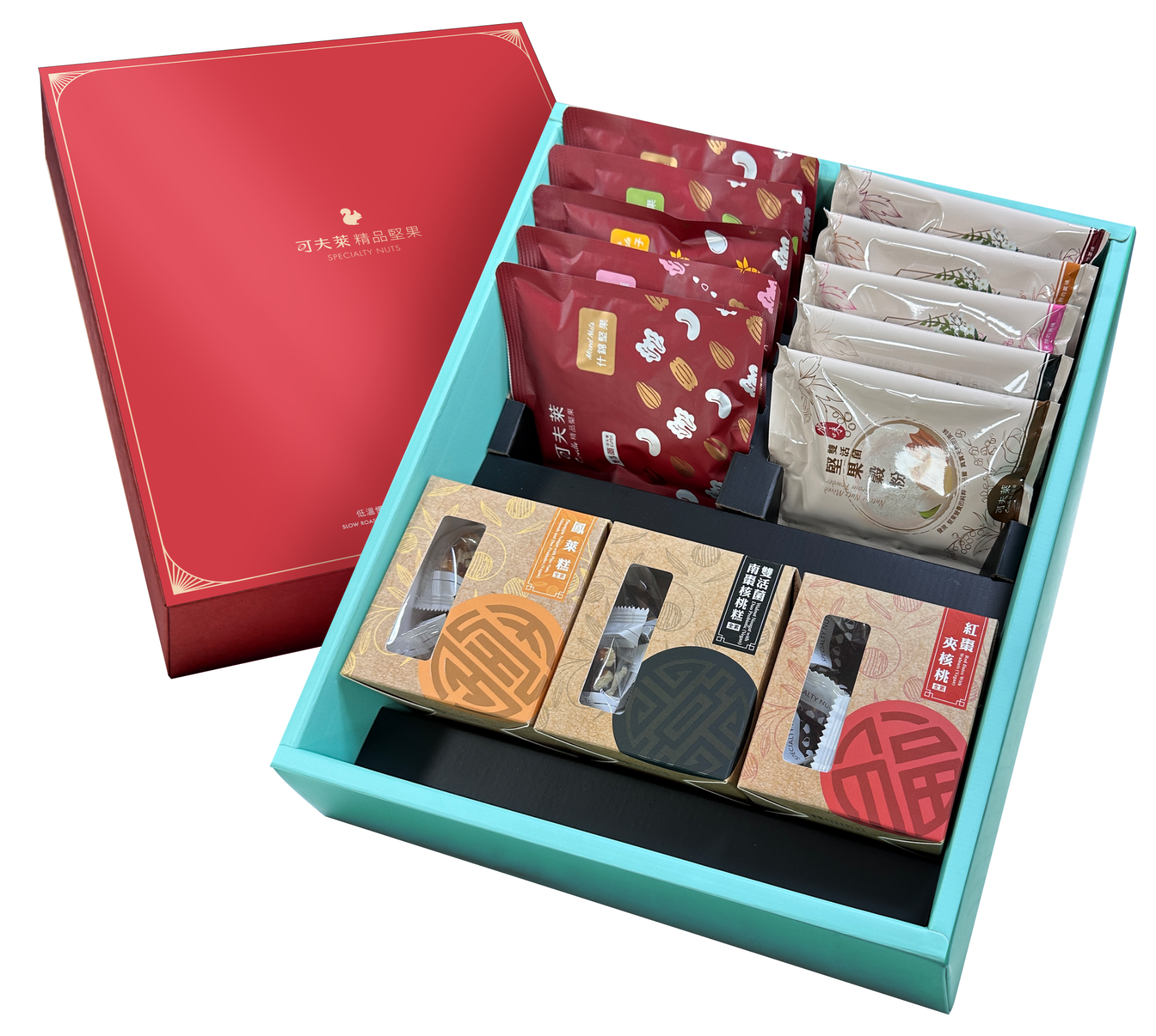 *鳳萊糕:鳳萊餡(鳳梨餡(鳳梨、麥芽糖漿、砂糖、橄欖粕油)、綠豆沙(綠豆仁、蔗糖、白鳳豆、大豆沙拉油)、麥芽糖漿)、杏仁條、松子、麥芽糖、海藻糖、白線粉(馬鈴薯澱粉、樹薯澱粉、番薯粉)、 沙拉油、雙活菌(燕麥粉、納豆菌發酵物、芽孢乳酸菌發酵物、麥芽糊精)、鹽、維生素E(抗氧化劑) |