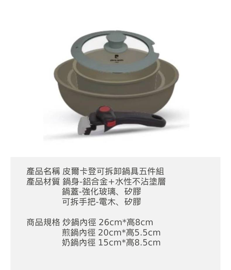• 可拆卸鍋具五件組PCJR-035(鐡灰色)