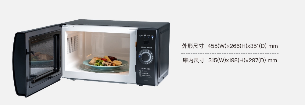 容積:20L微波出力:兩段式 (650W、500W)本體尺寸(cm) :266mm(H)×455mm(W)×351mm(D)庫內尺寸(cm) :198mm(H)×315mm(W)×297mm(D)重量: 約10.8kg額定電壓頻率: 110V/60Hz