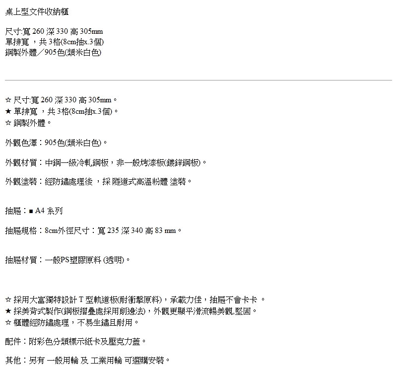 大富 桌上型文件資料櫃/3格/SY-A4-406G