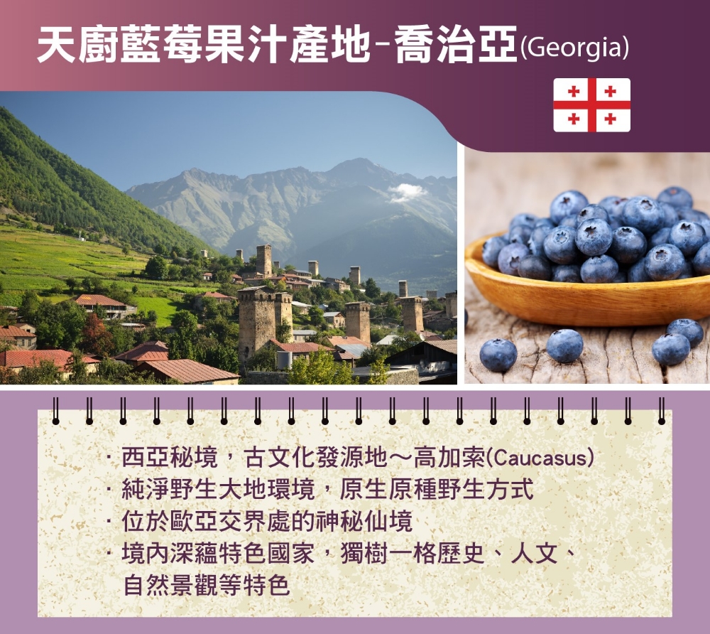 全果鮮榨,100%天然原汁,原產於北歐野生品種藍莓「山桑子」,