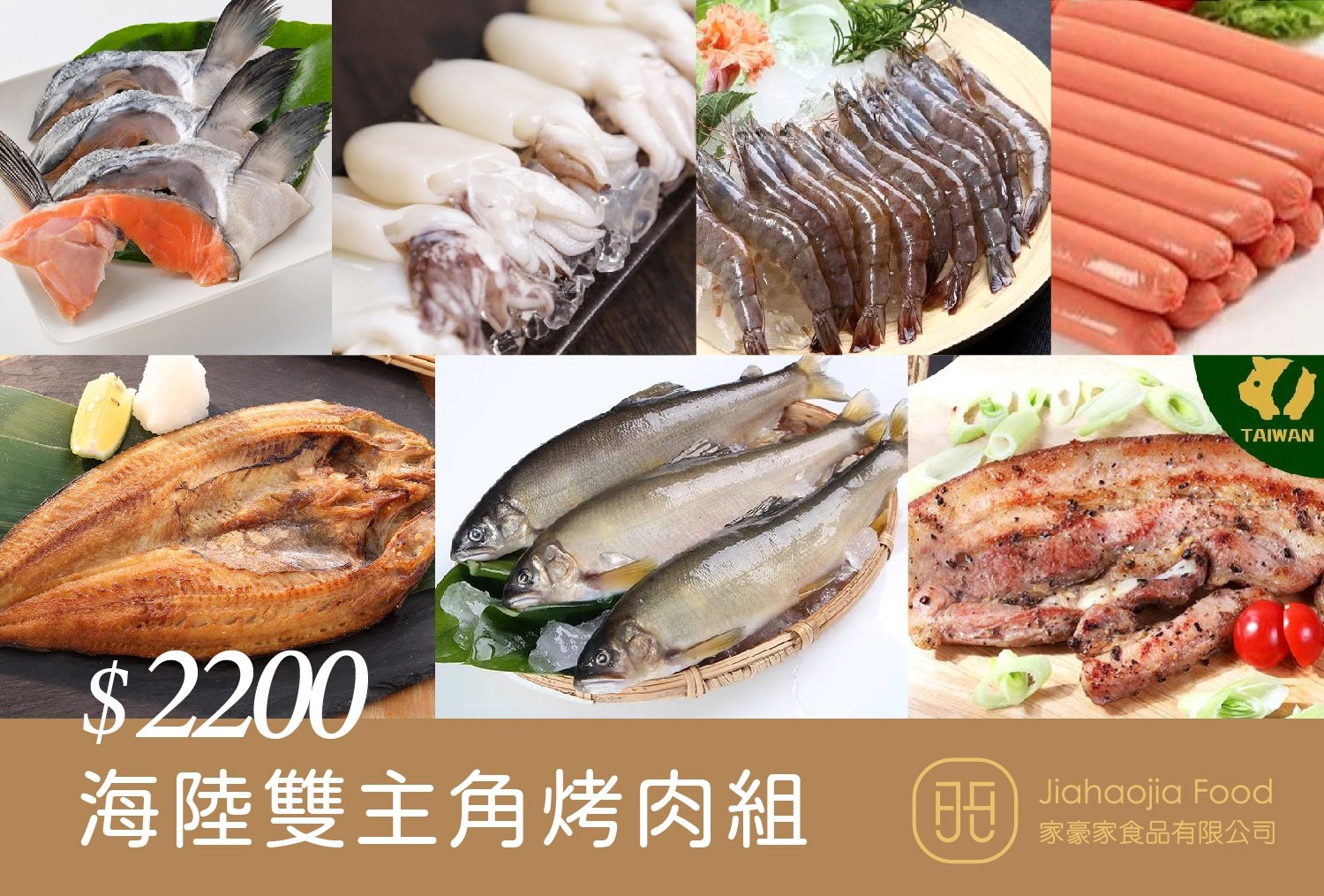 宜蘭嚴選公香魚900g/10p+日本花魚一夜乾240g+活凍白蝦650g+鮭魚下巴500g+塔香去骨雞腿排440g*2盒+國產秘製黑胡椒鹹豬肉250g+鮮甜小花枝500g+小熱狗450g