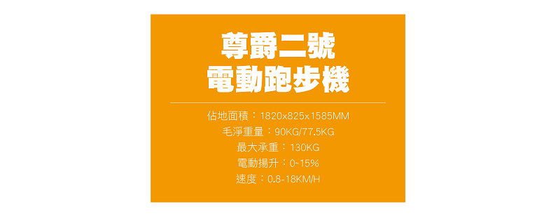 尊爵2號電動跑步機(短期租/季付)首期租金