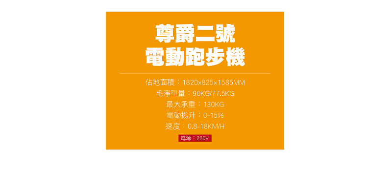 尊爵2號電動跑步機(3年租/月付)首期租金