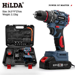 希爾達HILDA 21V 雙電短軸無刷電鑽起子機工具盒組