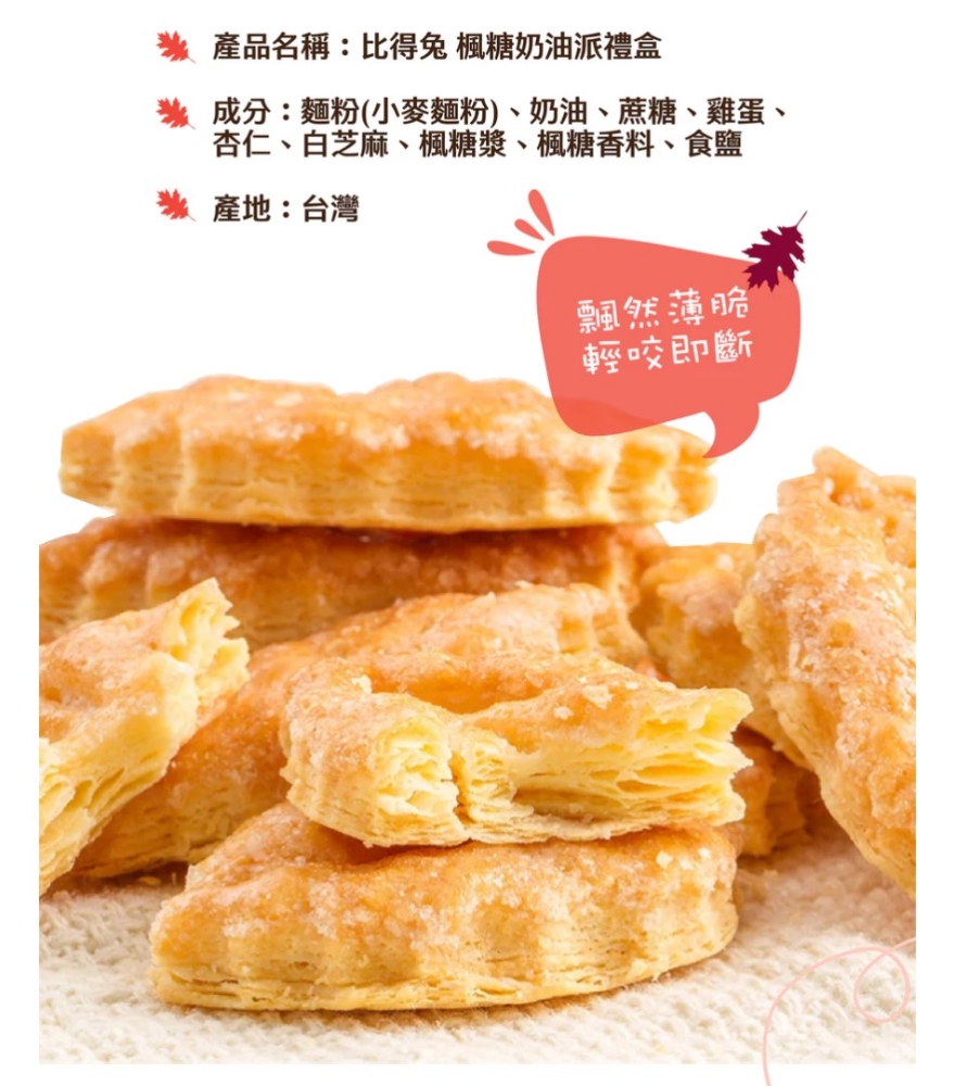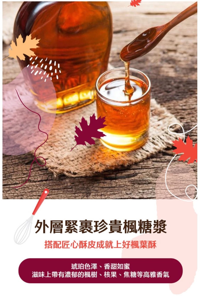 ✨可愛的葉子造型千層派,添加楓味十足的楓糖漿, 香氣迷人, 口感酥脆不甜膩 ✨精巧緻麗的鐵罐包裝,食畢可做實用收納盒