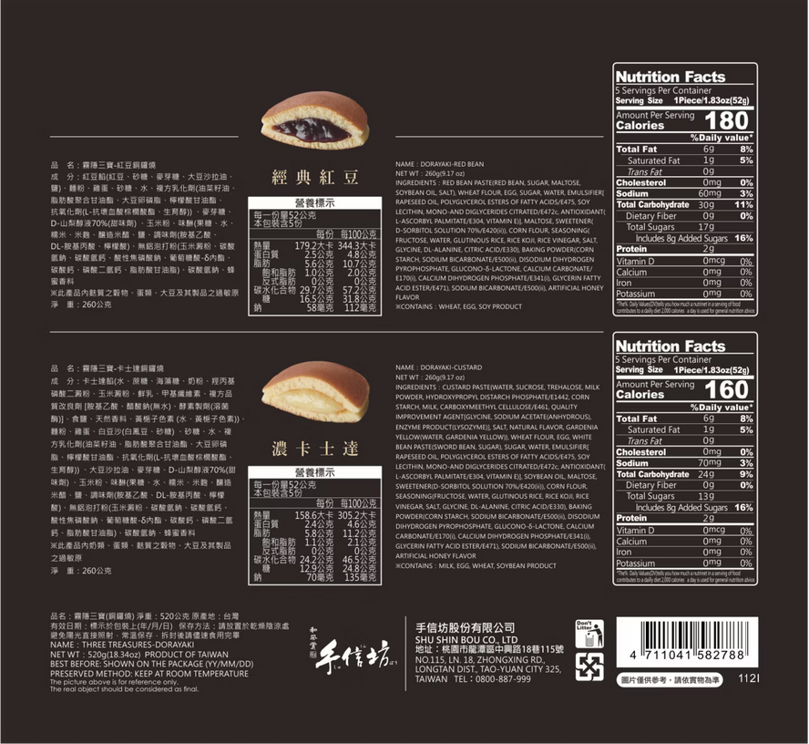 520g(紅豆銅鑼燒*5+卡士達銅鑼燒*5)