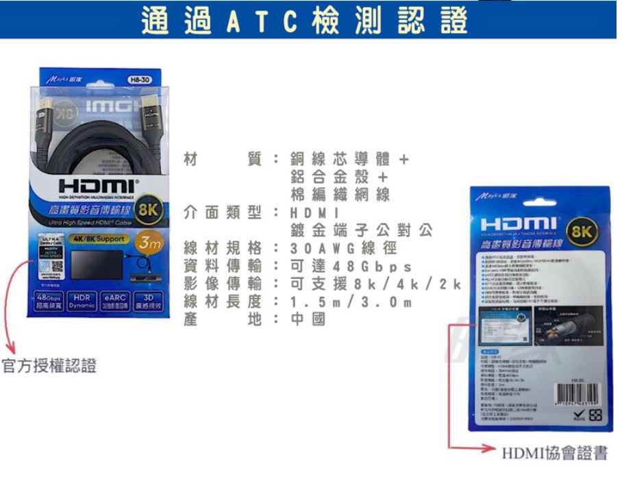 明家 Mayka HDMI高畫質影音傳輸線/H830/3M