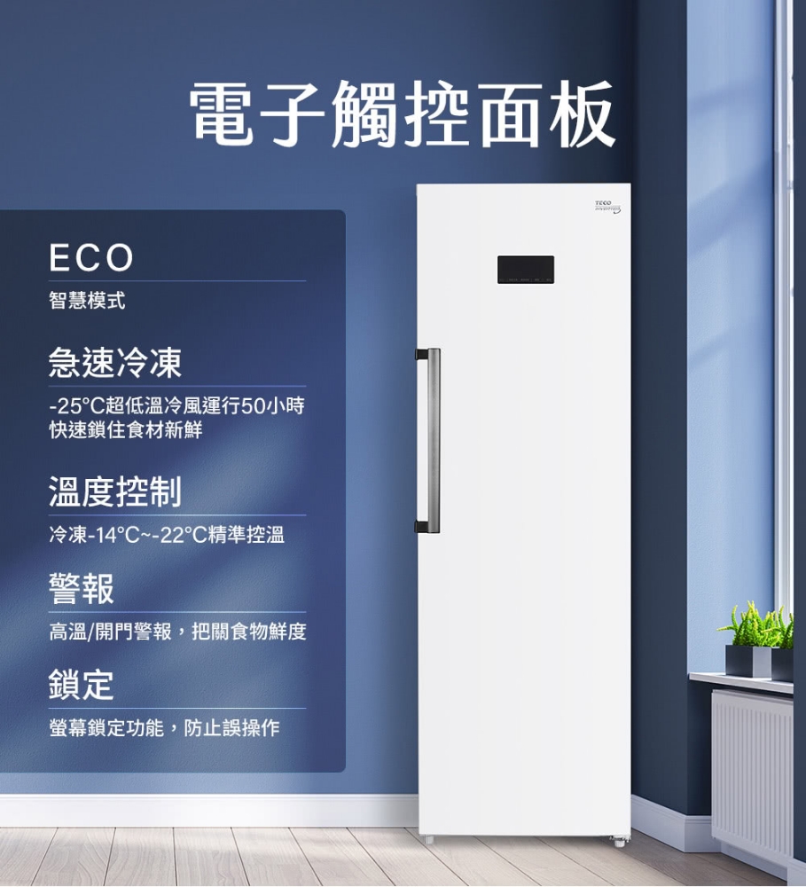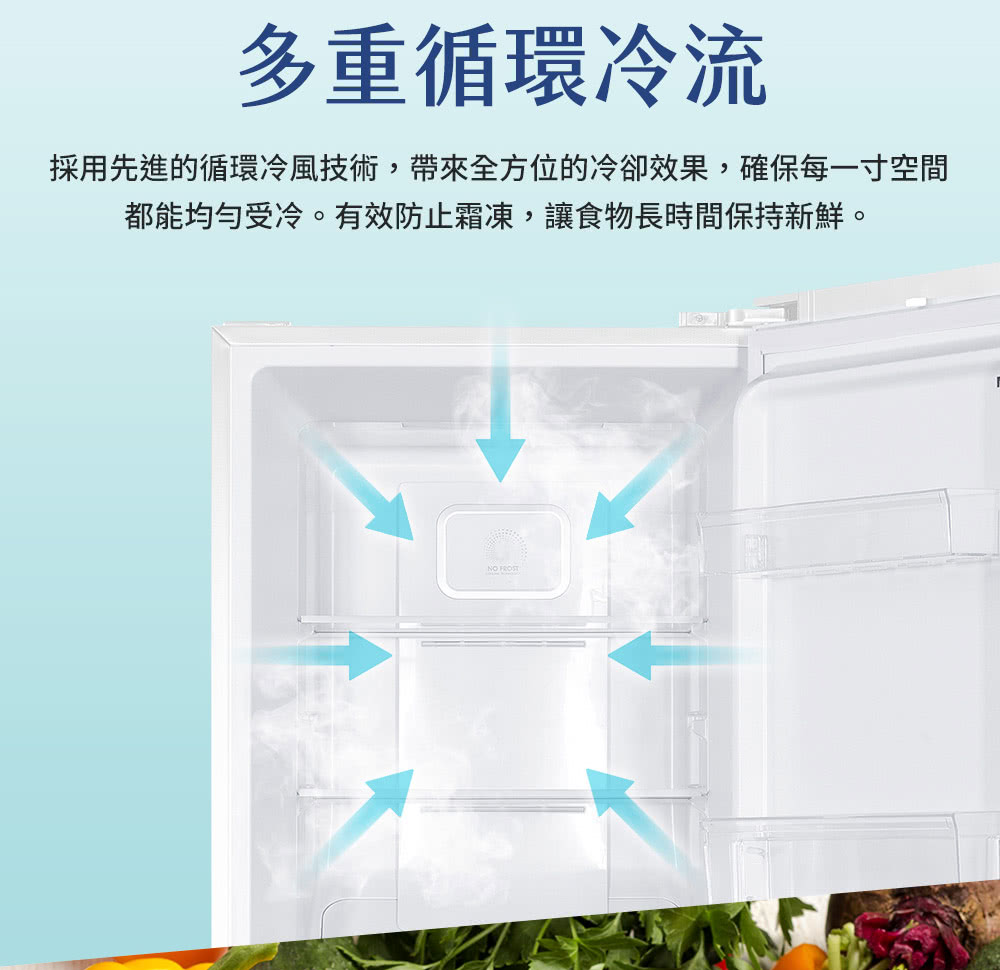變頻節能省電,風冷不結霜 電子觸控操作,精準控溫 4星級冷凍力 環保R600a新冷媒 ●不配送離島 ●偏遠地區需加收運費