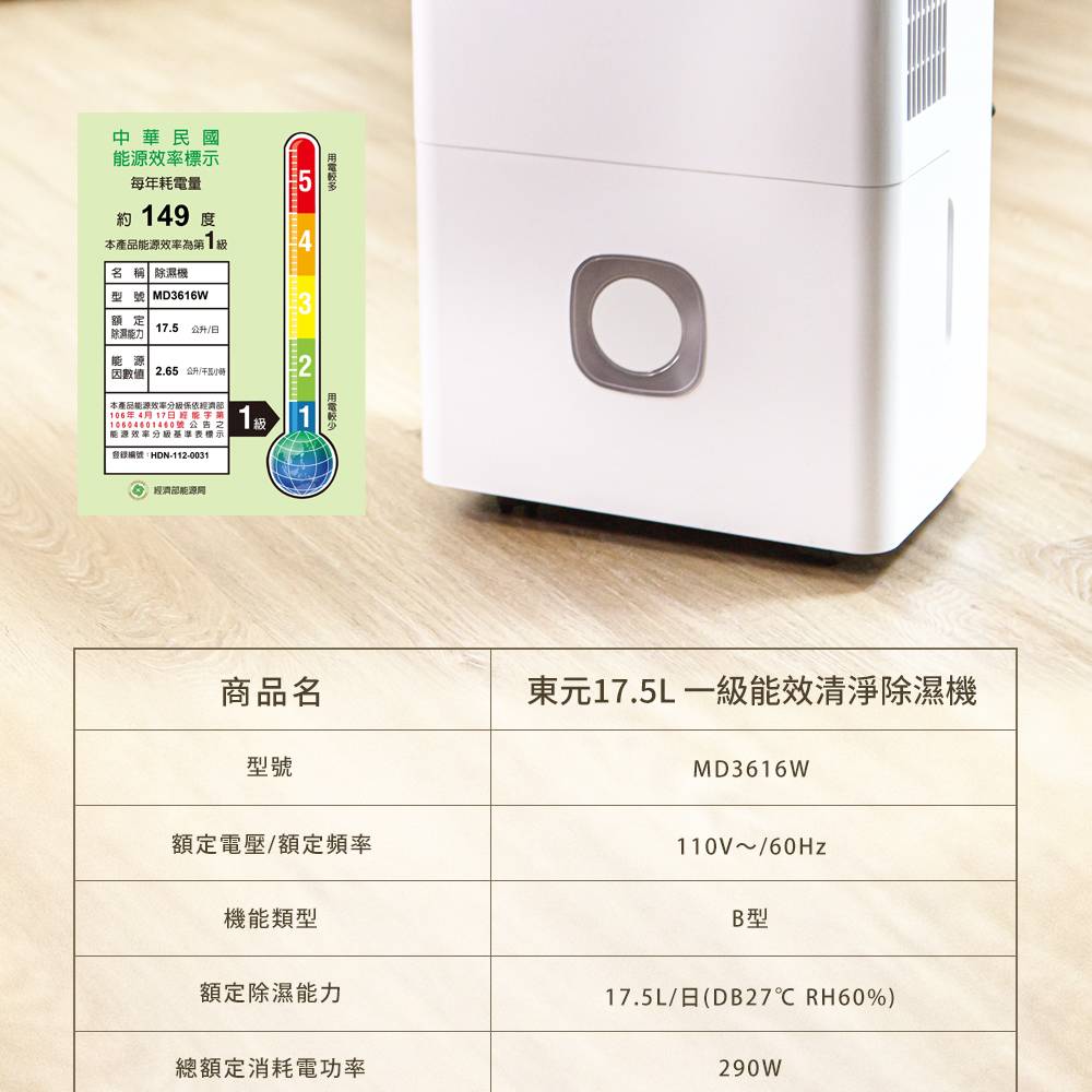•額定除溼能力:17.5L/日(DB27°C RH60%)