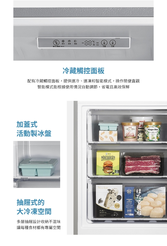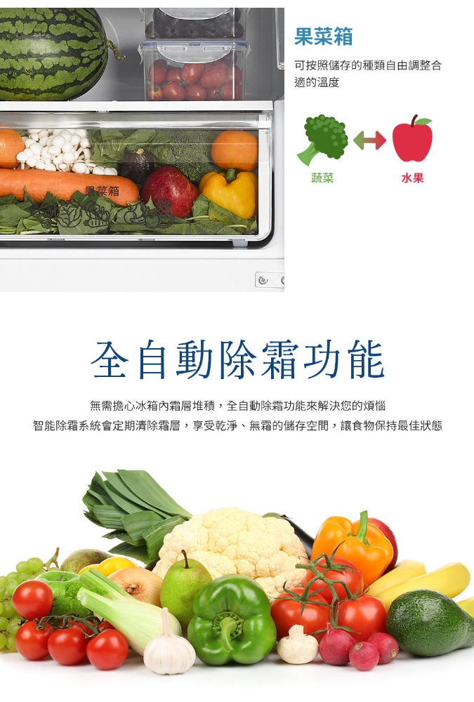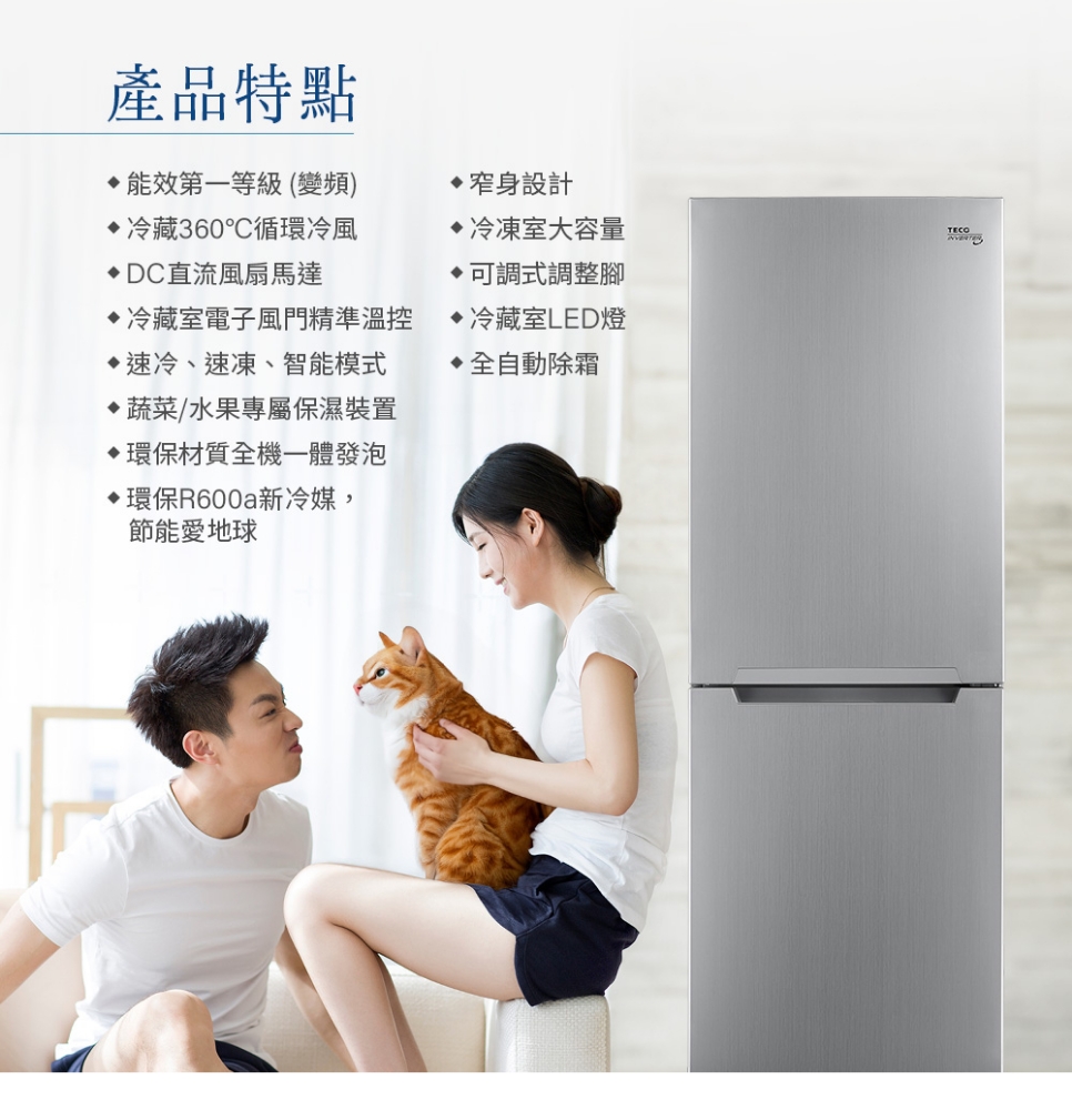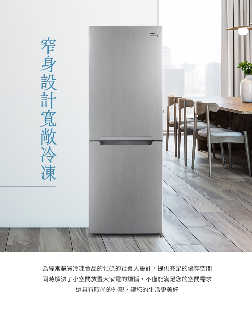 變頻能效第一等級 窄身設計 速冷速凍、智能模式 冷藏觸控面板 全自動除霜 冷藏觸控面板 冷藏室電子風門精準溫控 上冷藏下冷凍 *偏遠地區運費另計,不配送離島