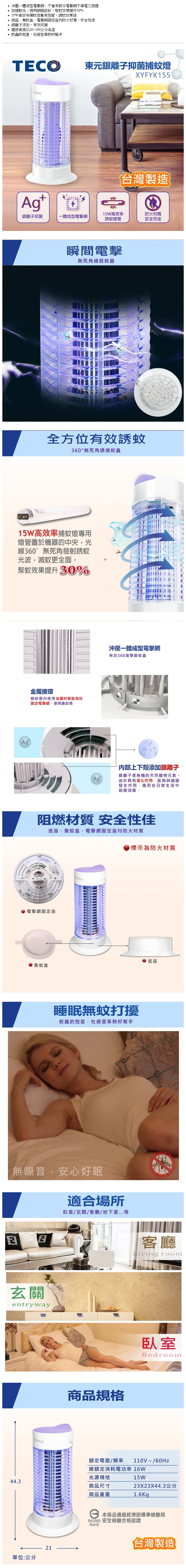 東元TECO 15W銀離子抑菌捕蚊燈/XYFYK155/台