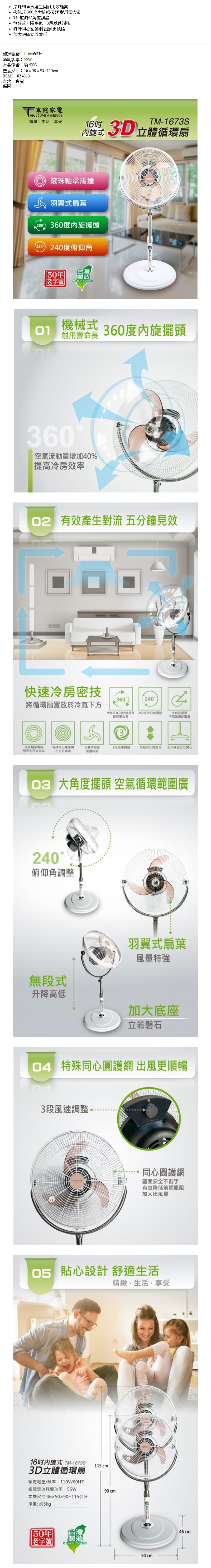 東銘16吋內旋式3D立體循環扇/TM-1673S/