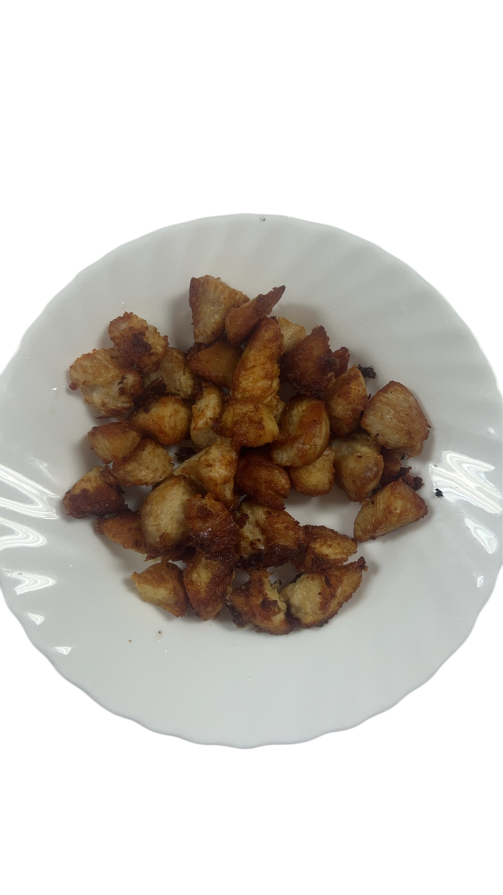 內容物:雞肉、水、樹薯澱粉洋蔥、胡蘿蔔、糖、鹽、分離大豆蛋白(非基因改造)、白胡椒粉、蒜粉。食品添加物:黏稠劑(乾酪素鈉)、品質改良劑(多磷酸鈉、無水焦磷酸鈉、無水磷酸鈉、無水醋酸鈉)、酵素製劑(谷氨醯胺轉氨酶)、調味劑(胺基乙酸、檸檬酸、L-麩酸鈉、DL-胺基丙酸、5'次黃嘌呤核苷磷酸二鈉、5'鳥嘌呤核苷磷酸二鈉、琥珀酸二鈉)、乳化劑(脂肪酸蔗糖酯)、抗氧化劑(異抗壞血酸鈉、生育醇-維生素E)、保色劑(亞硝酸鈉)、香料、甜味劑(甘草素)。★保存方法及期限:冷凍-18℃以下 18個月。★過敏原資訊:本產品含大豆及牛奶(乾酪素鈉)成份。★使用方式:1.煎或炒:先於鍋中倒入冷油,再放入以中火煎或炒5分鐘即可食用2.烤:解凍後用烤箱以約150℃的溫度,烤5至8分鐘即可食用3.炸:解凍後請以150℃,油炸3分鐘,炸至色澤金黃色即可食用★製造商名稱:國際農畜股份有限公司。 |