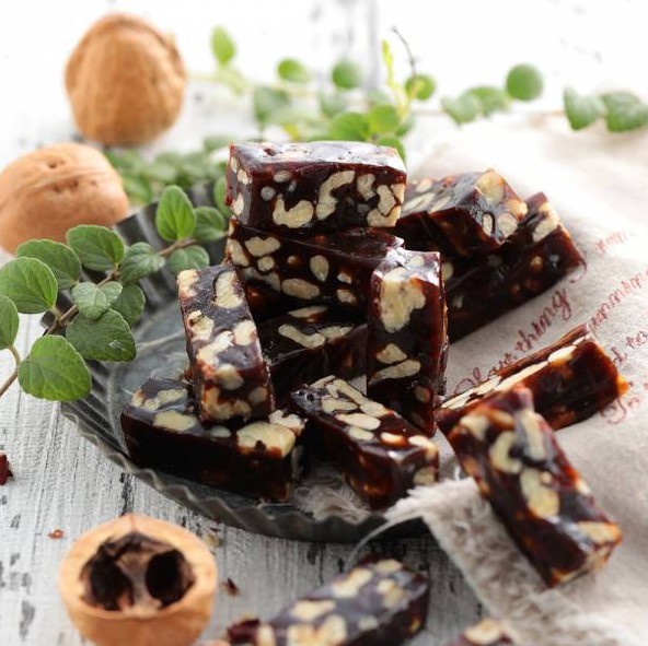 極品南棗核桃糕,滿足老饕的味蕾,花近半年時間研究而成的自信之作,使用天然新鮮的黑棗細火慢慢煮,加入健康的美國加州核桃,甜度適中香味自然,是道中式'養生糕點。