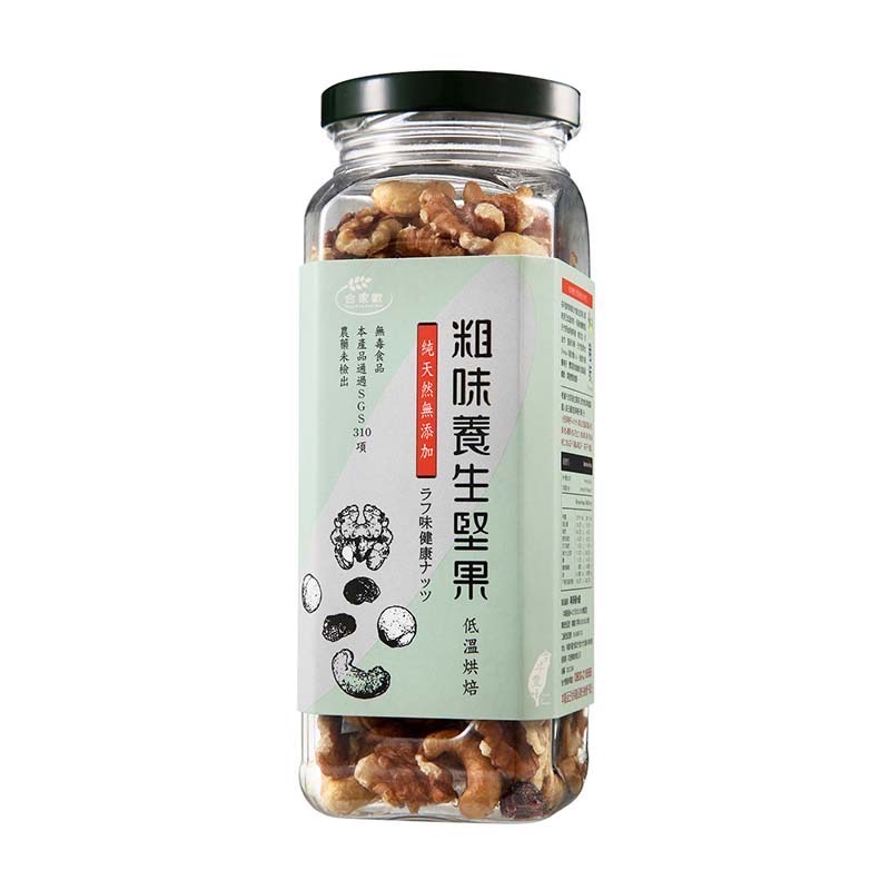養生堅果罐230g、粗味鹽之花高纖燕麥餅18g*2包、粗味香蔥高纖燕麥餅(五辛素)18*2包、香濃可可高纖燕麥餅18g*2包 保存期限::9 個月 禮盒尺寸:19.5*22*8(cm) ●防疫在家營養不流失,使用台灣契作糙米為主原 料,原豆低溫烘焙,保留營養價值。精選自然農 法原料,無添加,非油炸。堅果含維生素 E,含 Omega-3 脂肪酸 ALA,提供營養補充不飽和脂肪 酸。 ●全素食,不含麩質配方,可安心食用。本產品已 通過 SGS 檢測。 ●精選各式堅果採自然農法堅果,原豆低溫烘焙 保留營養價值,無添加,非油炸。低糖、低熱 量、高纖維