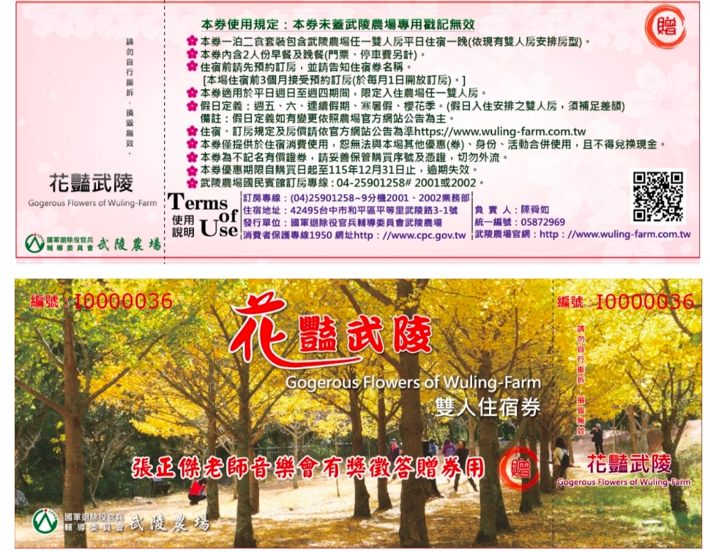 武陵農場-花艷武陵雙人住宿優惠券(預購)