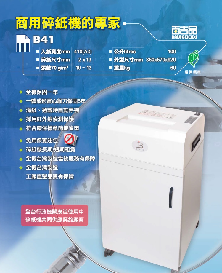 原產地:台灣 銷售方式:製造、批發、零售、出口 競爭特點 多樣設計:百吉品有限公司提供多樣化設計 設計變更不另通知、外觀細部僅供參考 碎斷率、切紙張數以實機為準 ± 10% |
