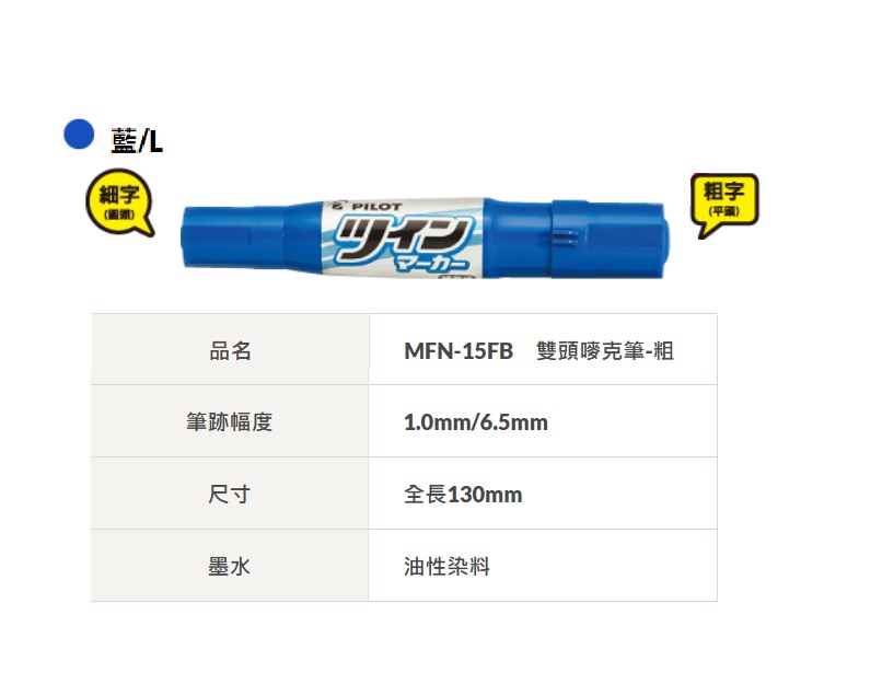 百樂PILOT雙頭麥克筆MFN-15FB-L/藍/1.0~6.5mm
