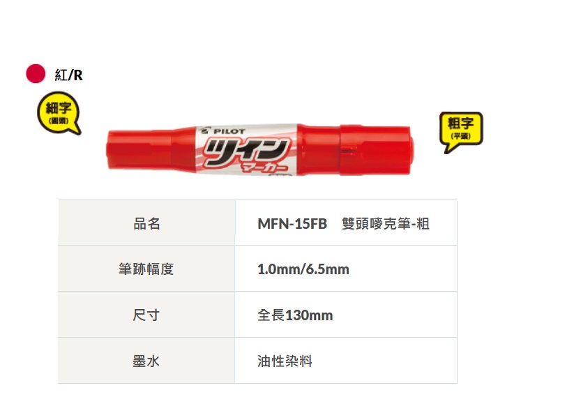 百樂PILOT雙頭麥克筆MFN-15FB-R/紅/1.0~6.5mm