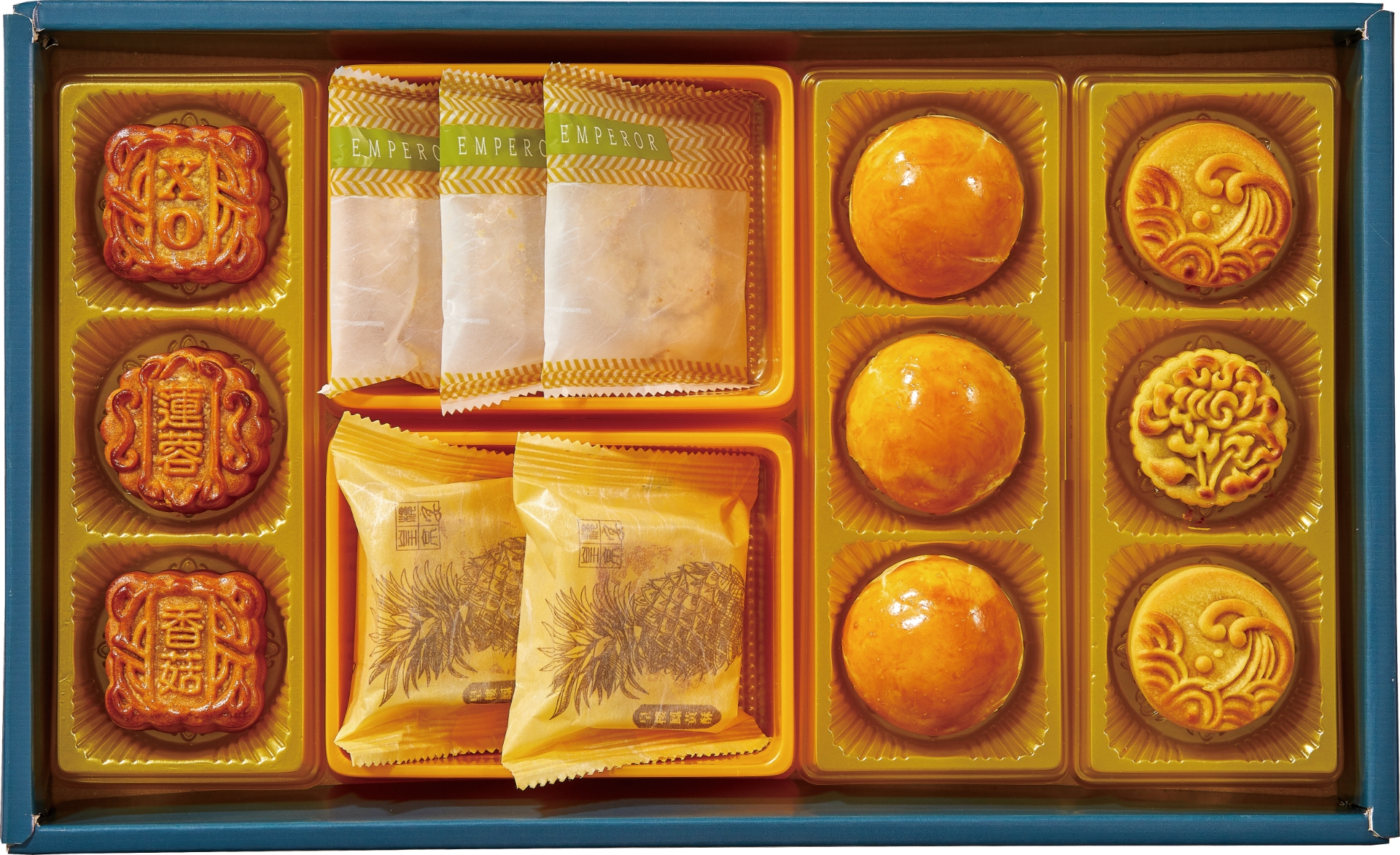 番薯核桃餡【番薯餡[番薯、蔗糖、麥芽糖、麥芽糊精、大豆沙拉油、地瓜香料]、核桃】、月餅餡【白鳳豆、蔗糖、蛋黃、麥芽糖、水、脂肪抹醬、味醂[果糖、水、糯米、米麴、鹽]、奶油、糯米粉、品質改良劑[醋酸鈉(無水)、脂肪酸蔗糖酯]、羥丙基磷酸二澱粉、香草香料、食用黃色四號】、蛋黃、糯米粉、麵粉、味醂【果糖、水、糯米、米麴、鹽】、蔗糖、水、品質改良劑【醋酸鈉(無水)、脂肪酸蔗糖酯】、鳳梨、檸檬、檸檬酸