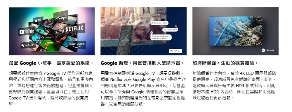 【福利品】PHILIPS 飛利浦50型《4K HDR》Google TV智慧顯示器 50PUH7129(限量供應/不含安裝服務) 圖片