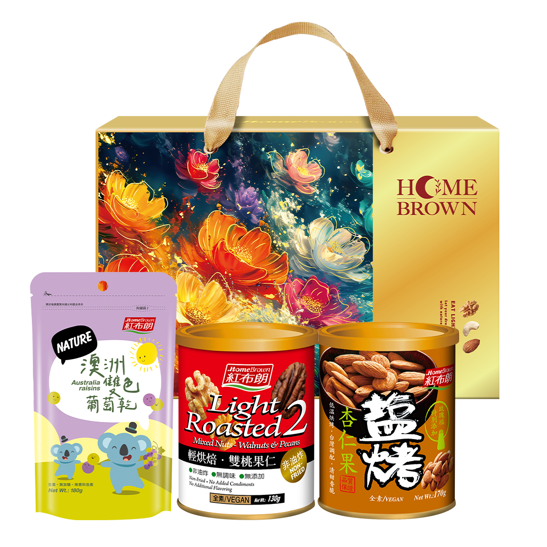◆輕烘焙雙桃果仁:核桃仁、胡桃仁。✽保存期限:15個月(未開封)。◆鹽烤杏仁果:杏仁果、玫瑰塩。✽保存期限:15個月(未開封)。◆超大葡萄亁:青堤子葡萄乾、黑醋栗葡萄乾原產地:澳洲(台灣分裝)✽保存期限:12個月(未開封)。✽製造/有效日期:標示於罐底(西元年/月/日)。✽食用說明:開罐後即可食用。✽保存方式:置於陰涼處避免陽光直射與潮溼高溫,開封後請冷藏保存並儘速食用完畢。✽本產品含有堅果類,不適合對其過敏體質者食用。產品資訊若與包裝上略有差異時,以實際包裝上標示為準。製造廠通過ISO22000 & HACCP 國際品質認證,品質安心有保障必 本產品已投保台灣產物保險2000萬產品責任險(保險區域僅限台灣、澎湖、金門、馬祖),等同理賠金額。✽製造商:紅布朗國際有限公司。〔禮盒尺寸:27x9x17.5cm〕 |