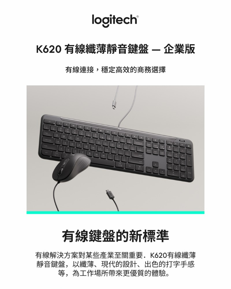 羅技Logitech有線鍵盤/K620/企業版
