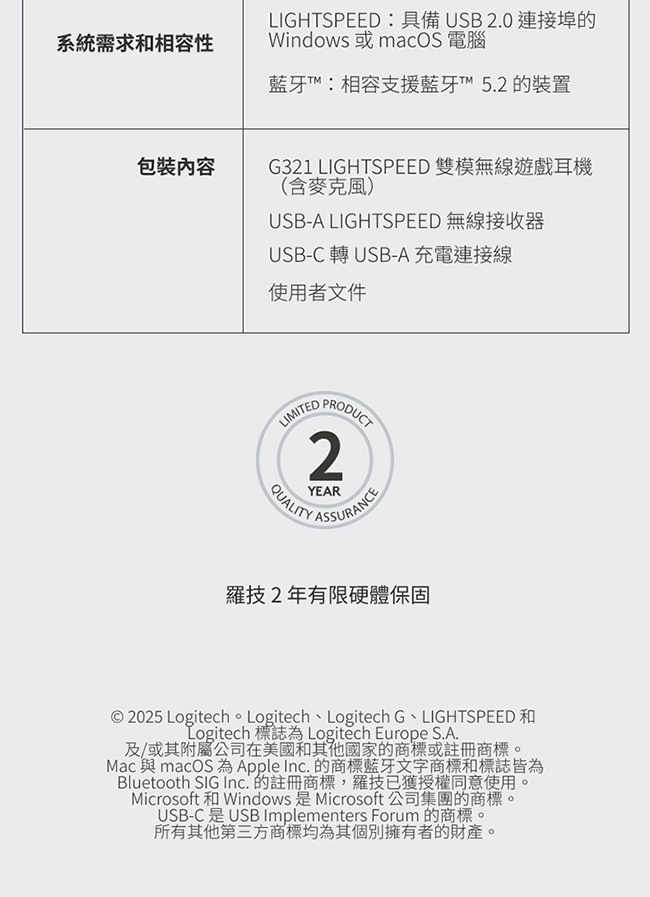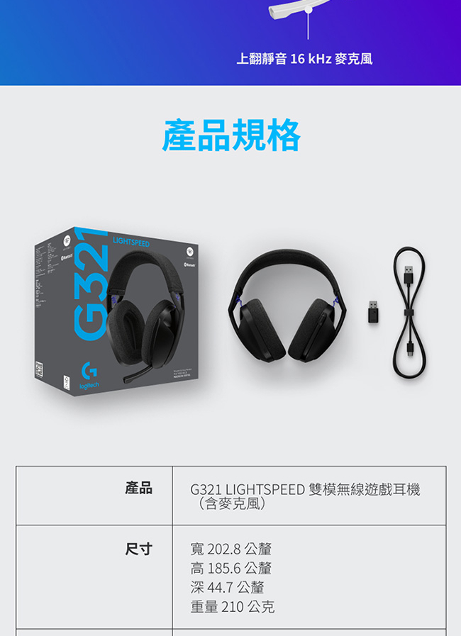 羅技Logitech LIGHTSPEED雙模無線遊戲耳機/G321/黑