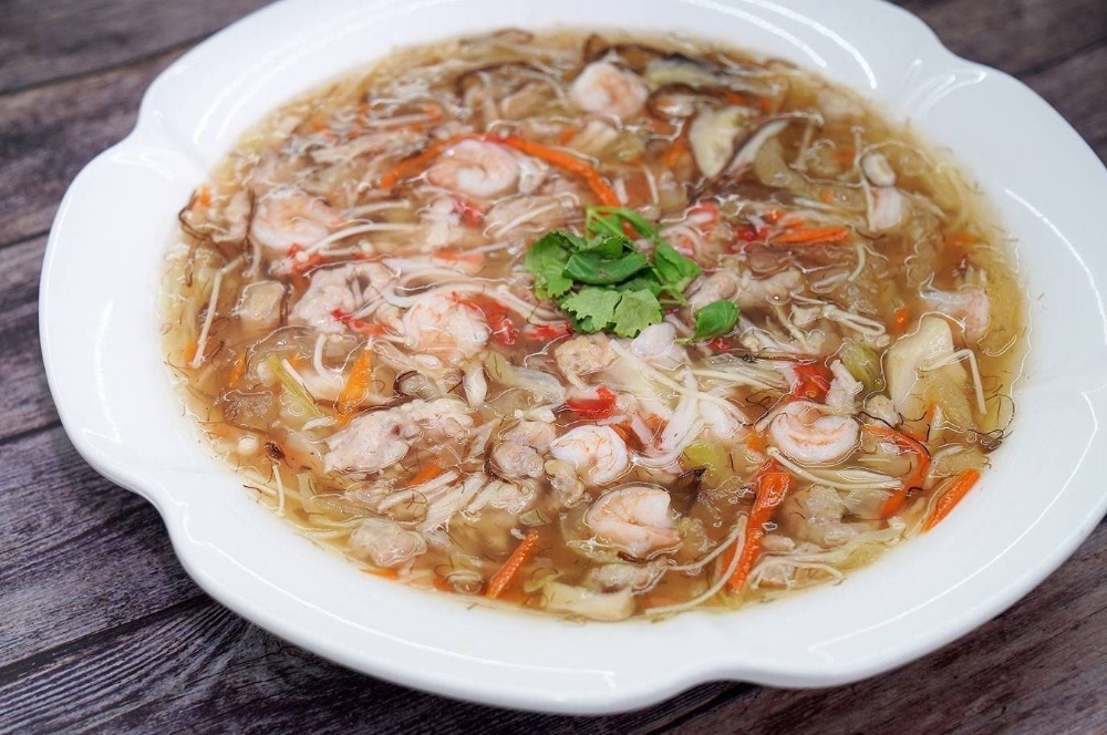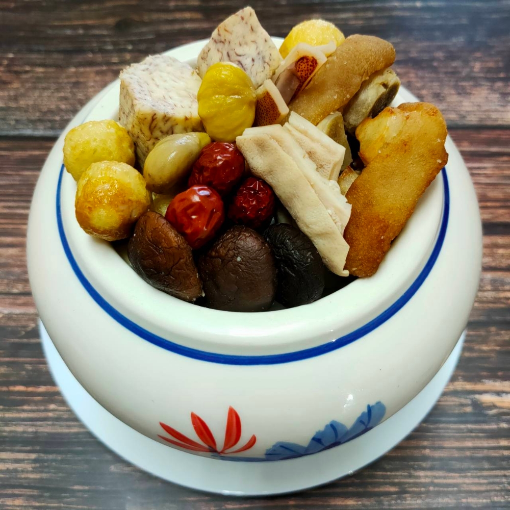 10人份:山珍海味佛跳牆1200g、藥膳土雞湯1200g、鴻運豬腳600g、藥膳醉蝦300g、芋香米糕600g、糖醋鱸魚600g、海鮮羹1200g、手工八寶丸10粒