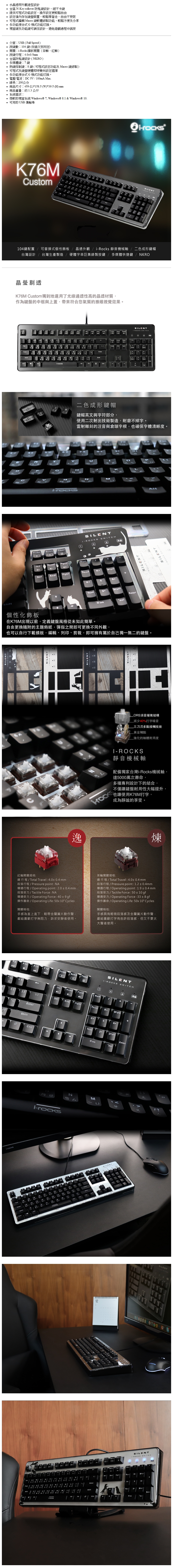 艾芮克i-Rocks Custom靜音機械式鍵盤/IRK76MN/黑色紅