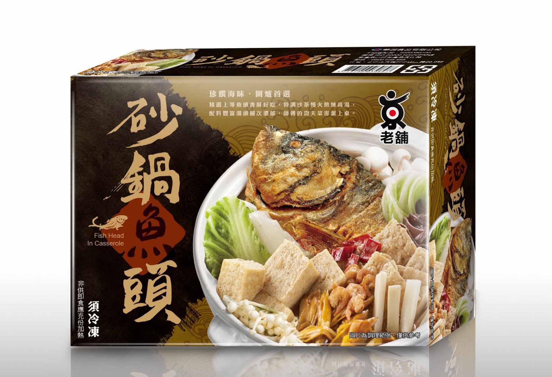 成分:水、魚頭、大白菜、芋頭、油豆腐(水、非基因改造黃豆、大豆沙拉油、氯化鎂、脂肪酸甘油脂)、沙茶醬(大豆沙拉油、魚乾、蒜頭、南薑粉、椰子粉、蔥乾、芝麻、赤尾青、辣椒粉、食鹽、咖哩粉、胡椒)、小貢丸{豬肉(台灣)、高湯[水、豬骨(台灣)]、蔗糖、小麥蛋白、食鹽、大豆油、芝麻油、蒜頭、白胡椒粉}、爆皮[豬皮(台灣)、大豆沙拉油]、扁魚乾、蒜仁、蛋酥(蛋、大豆沙拉油)、金針花、冬蝦、白胡椒粉[麩皮粉、麥芽糊精、綠辣椒、胡椒(11%)、玉米澱粉、辣椒、茶枝、八角、當歸(調味用)] |
