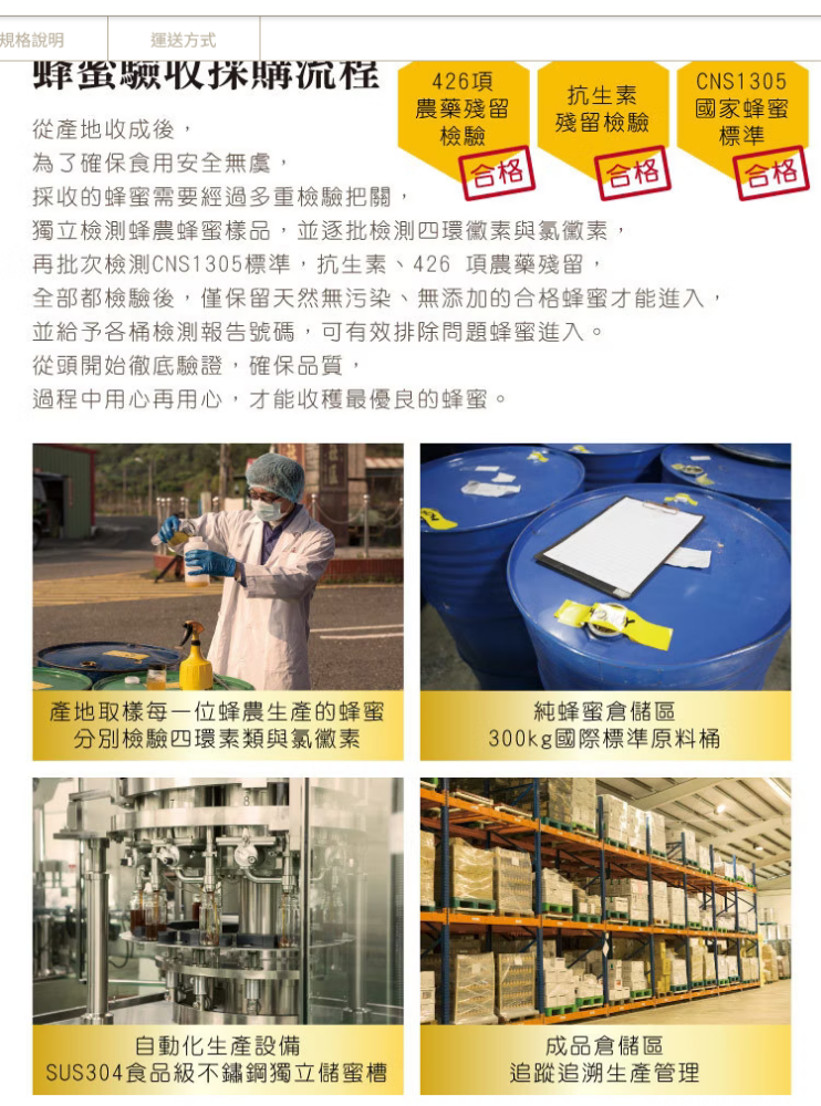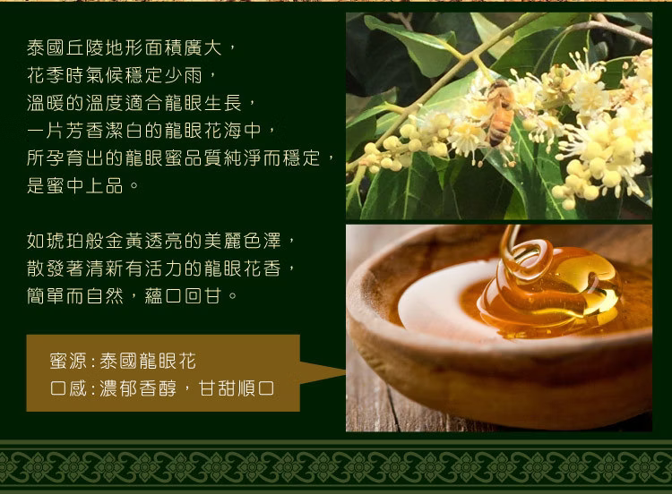 ◆蜂蜜。★保存期限:3年。★保存方式:請放置陰涼處。★有效日期:標示於包裝上。★產地:泰國。※ 3歲以下幼童,因腸胃消化系統尚未完善發育,請勿食用蜜蜂工坊全產品。※ 蜂蜜結晶屬自然現象,如遇結晶,請隔水加熱40度以下即可還原,建議食用方式是直接當作抹醬食用,較可保存原營養。※ 此產品為食品,如有特殊體質、疾病、禁忌者,請諮詢醫師,遵照醫師囑咐。★製造商:蜜蜂工坊生物科技股份有限公司。〔提袋尺寸:13.5x9x28.5m〕