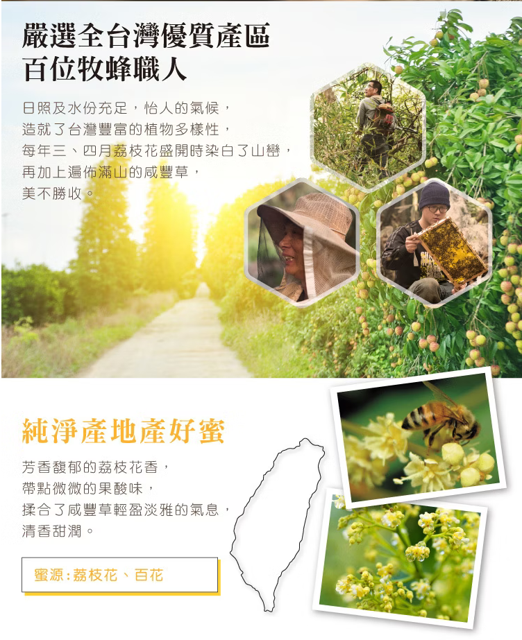 ★嚴選台灣純淨產地★蜜源來自荔枝、百花,口感香醇層次豐厚