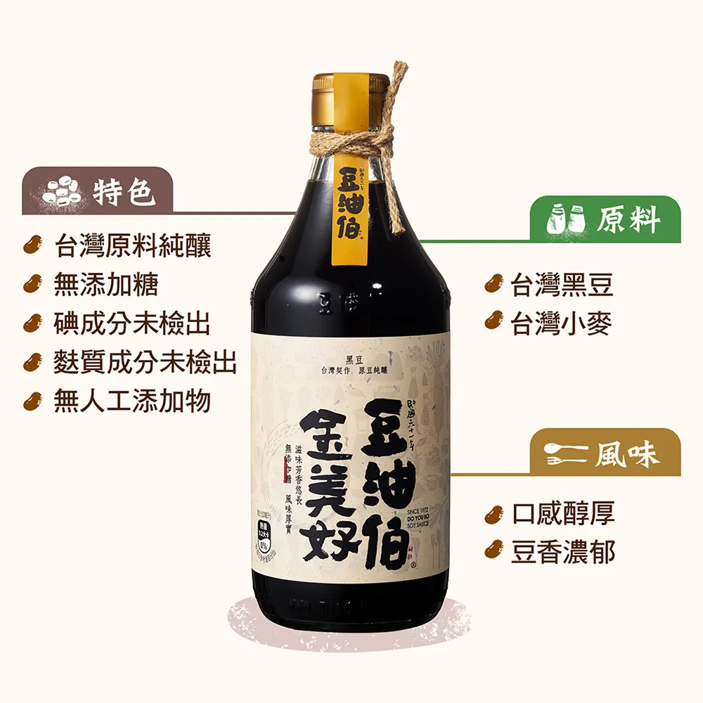 品名:豆油伯金美好無添加糖釀造 (黑豆) 醬油