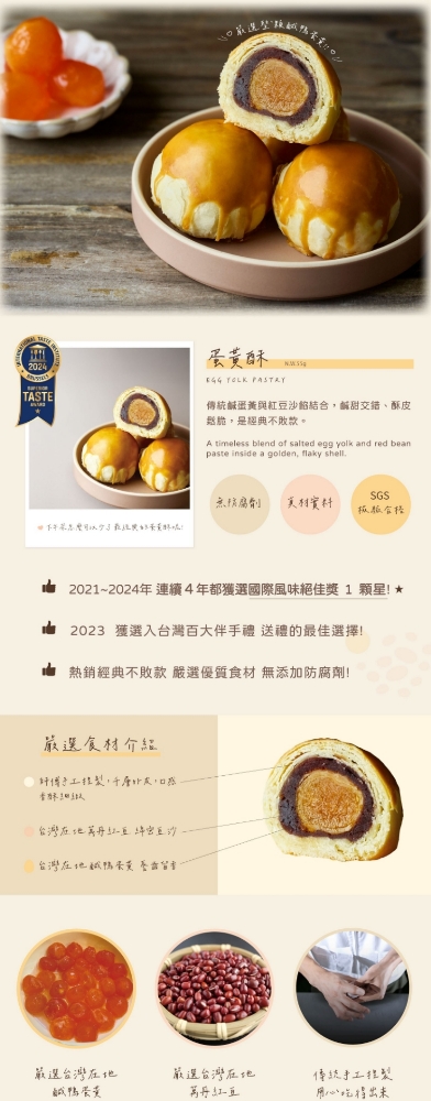 ◆奶油紅豆餡[紅豆、砂糖、海藻糖、麥芽糖漿、奶油、黃豆油、D-山梨醇(品質改良劑)、增稠劑(辛烯基丁二酸鈉澱粉、羥丙基磷酸二澱粉、玉米糖膠)]、麵粉、鹹蛋黃(鴨蛋、食鹽)、酥油【植物油(棕櫚油、大豆油、棕櫚仁油)、無水奶油、乳化劑{脂肪酸丙二醇酯、脂肪酸甘油酯[抗氧化劑(L-抗壞血酸)、檸檬酸]}、大豆卵磷脂、香料、抗氧化劑-維生素E(混合濃縮生育醇、芥花油)、複方β-胡蘿蔔素[玉米油、β-胡蘿蔔素、抗氧化劑(生育醇)]】、蛋、奶油、砂糖、白玉酥粉[馬鈴薯澱粉、β-環狀糊精、小麥粉、二氧化矽、香料(中鏈三酸甘油酯、香料)]★保存期限:常溫保存30天(未拆封)/折封後請盡快食用完畢。★過敏原聲明:本產品含有奶類、蛋類、含麩質穀類、大豆及其製品,不適合對其過敏體質者食用。本產品生產製程廠房,其設備或生產管線有處理堅果類、花生、芝麻及其製品。★保存期限:常溫保存30天(未拆封)/折封後請盡快食用完畢。★有效期限:標示於保裝上。★製造商:躉泰食品有限公司。 |