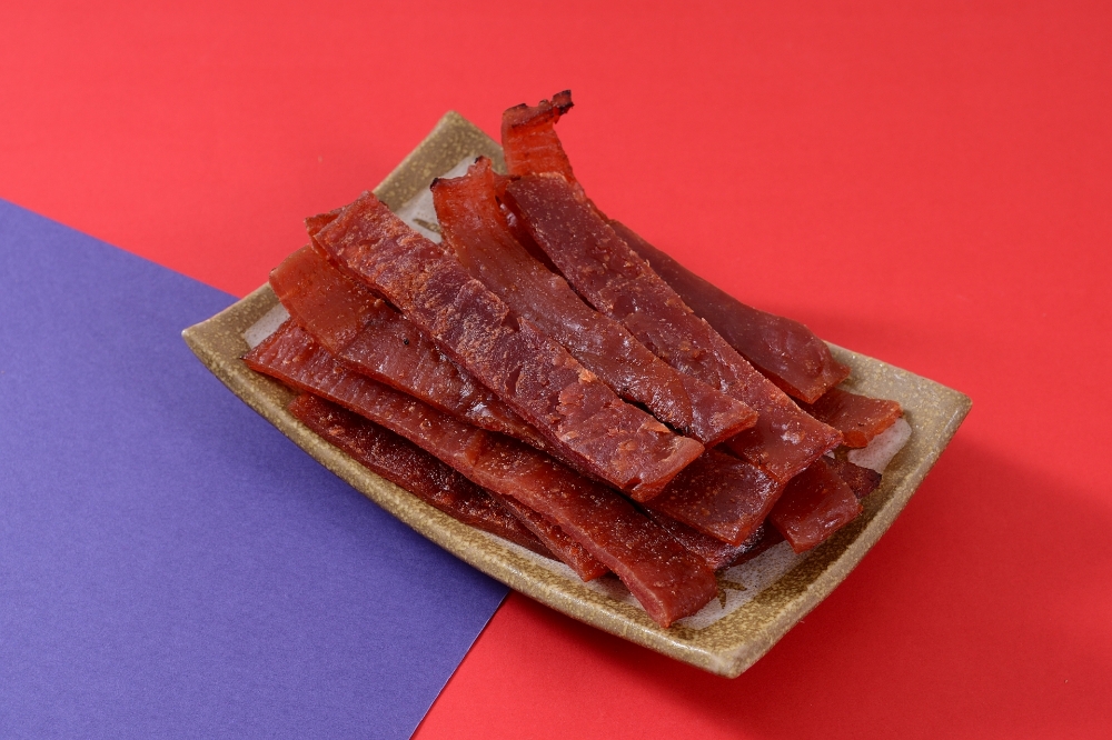 炙燒原味肉條 CAS豬肉(台灣)、蔗糖、醬油、食鹽、肉桂粉、甘草粉、丙三醇、己六醇(甜味劑)、異抗壞血酸鈉(抗氧化劑)、海藻糖、木瓜酵素、維生素E(抗氧化劑)、亞硝酸鈉(保色劑)、己二烯酸鉀(防腐劑)