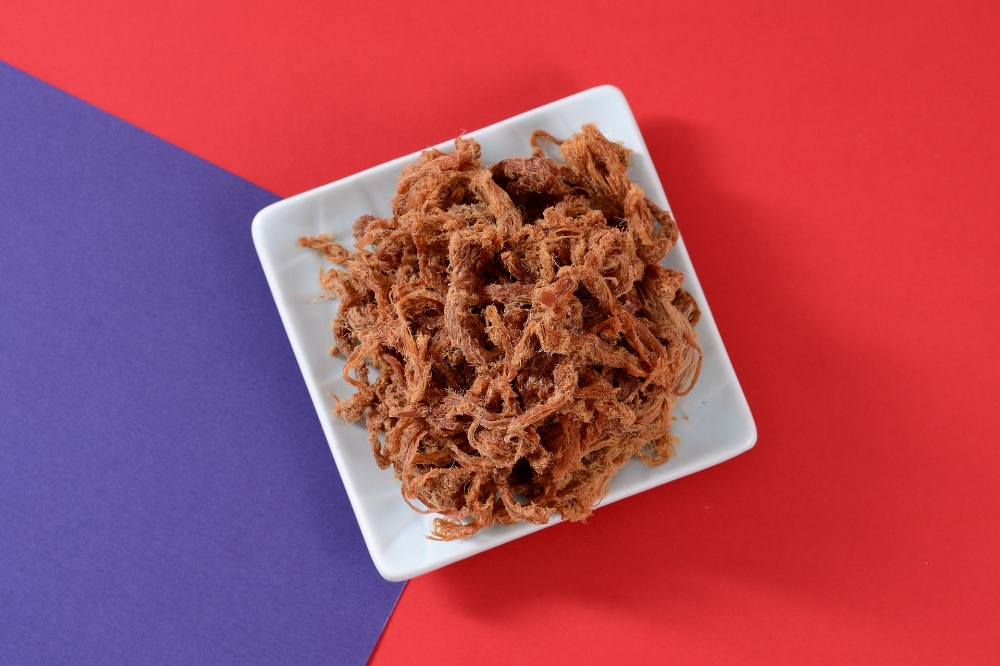 手工肉撕絲新鮮豬肉(台灣)、蔗糖、甘草粉、百草粉、辣椒粉、肉桂粉、丙三醇、醋、醬油、食鹽、亞硝酸鈉(保色劑)、己二烯酸鉀(防腐劑)