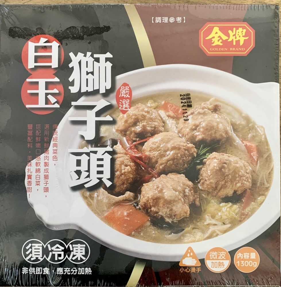 櫻花蝦米糕1000g、佛跳牆2000g、筍絲燴元蹄1200g、黑蒜頭燉土雞2200g、白玉獅子頭1300g。 ◆櫻花蝦米糕:糯米、水、豬肉、雞骨湯(水、雞骨)、醬油、米酒、薑、芝麻油、紅蔥酥、櫻花蝦、香菇、大豆油、冬蝦、冰糖、調味劑、精鹽、明膠(豬皮(台灣))、白胡椒。 ◆佛跳牆:水、豬腳、排骨(排骨、酥炸粉(小麥澱粉、樹薯粉)、大豆沙拉油)、芋頭、筍片、白菜、豬肚、鳥蛋、水翅(水、食用海藻膠、食用明膠、梔子黃色素)、栗子、蒜頭、烏醋、雞汁、大豆沙拉油、紅蔥酥、香菇、冰糖、精鹽、冬蝦、蒜粉(麥芽糊精、蒜粉、品質改良劑(二氧化矽)、大蒜香料)、複方調味劑、洋蔥粉(洋蔥、米) 、蝦粉、調味劑、肉精香料、紅蔥膏、肉精膏、胡椒粉、雞肉香料、五香粉(小茴香、肉桂、八角、胡荽、丁香)、辣椒粉。 ◆筍絲燴元蹄:蹄膀、滷汁【水、醬油、砂糖、精鹽、米酒、香蒜粉(麥芽糊精、蒜粉、品質改良劑(二氧化矽)、大蒜香料)、白胡椒粉、五香粉(小茴香、肉桂、八角、胡荽、丁香)、八角、花椒粒、辣椒粉】。筍絲包【水、筍茸、朴菜絲、芥花油、雞粉(鹽、麥芽糊精、L-麩酸鈉、糖、雞肉、雞油、水解大豆蛋白)、砂糖、蒜粉(麥芽糊精、蒜粉、品質改良劑(二氧化矽)、大蒜香料)、釀造醋、調味劑、紅蔥頭、胡椒粉、精鹽、砂糖、抗氧化劑】。 ◆黑蒜頭燉土:水、土雞、黑蒜頭、雞汁、蒜頭、米酒、精鹽、健美鮮CL(麥芽糊精、食鹽、蔗糖、酵母抽出物、黃豆水解蛋白、香菇抽出物、高麗菜抽出物)、冰糖、紅棗、醬油、枸杞、調味劑。 ◆白玉獅子頭:白菜、獅子頭、水、金針菇、豆角、大豆沙拉油、紅蘿蔔、木耳、蒜頭、蛋、紅蔥頭、粘稠劑、扁魚、冬蝦、冰糖、雞粉(鹽、麥芽糊精、L-麩酸鈉、糖、雞肉、雞油、水解大豆蛋白)、精鹽、白胡椒、蒜粉(麥芽糊精、蒜粉、品質改良劑(二氧化矽)、大蒜香料)。 ★保存條件:須冷凍-18℃以下。 ★保存期限:實際效期依包裝上標示為準 。 ★食用方式:解凍後,充分加熱料理即可食用。 ★原產地:台灣。 ★製造商:海集興業有限公司。 |