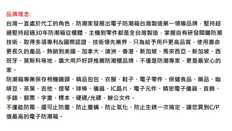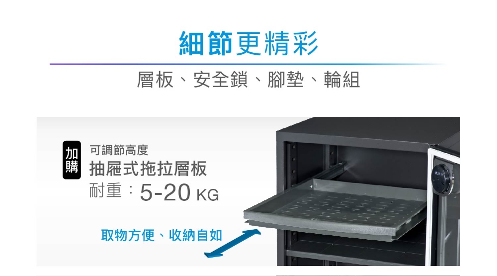 長效除濕、高分子物理吸附除濕 採智慧型無段式控制、高級濕度錶顯示 雙門大空間,內部收納空間相通 全球頂尖除濕技術,出色的排濕效能,物品保存更持久 櫃體、主機到零件MIT台灣製造