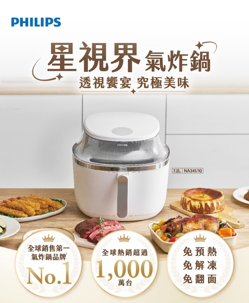 • 飛利浦透視海星氣炸鍋 7.2L/白色/NA341/10