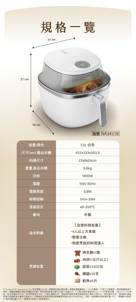 飛利浦透視海星氣炸鍋 7.2L/白色/NA341/10 圖片