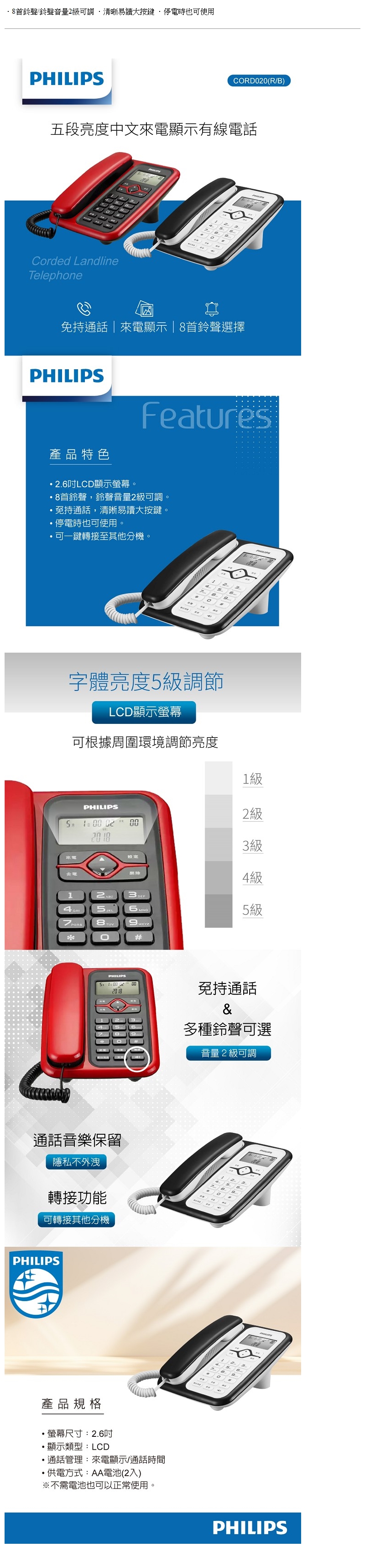 飛利浦PHILIPS中文來電顯示有線電話