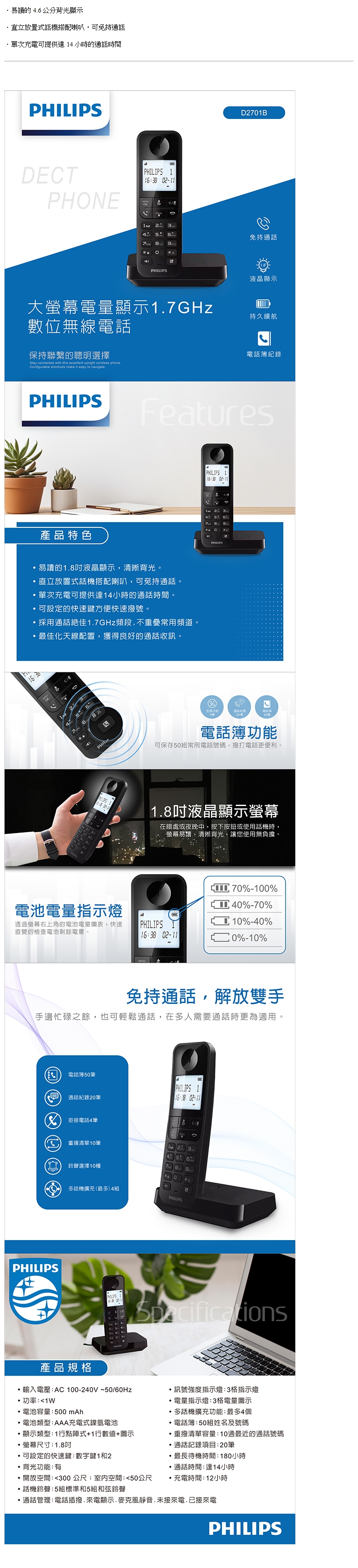 飛利浦PHILIPS大螢幕數位無線電話