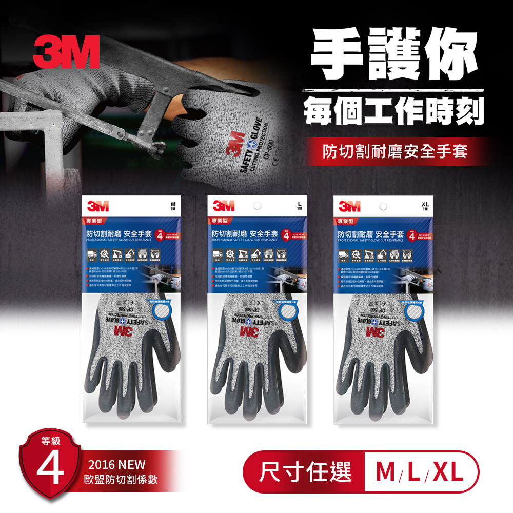 3M專業型防切割耐磨安全手套CP-500/XL